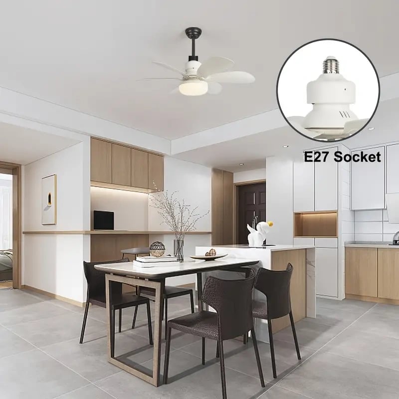 Bare fjern pæren fra sokkelen, skru inn sokkelviften, trykk på fjernkontrollen og nyt kjølig luft med en gang!