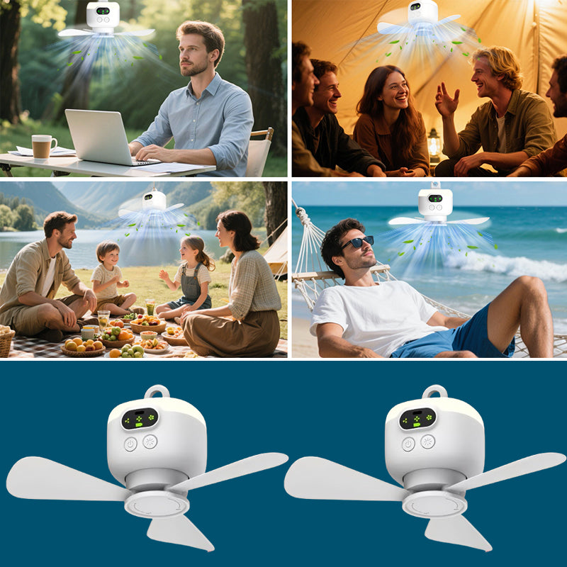 Denne lille utendørs takviften med trådløs fjernkontroll er designet for bærbare bruksområder som camping, sovesal og bil, og støtter USB-lading og plug-in. Lett og bærbar, men med sterk vind er den mer praktisk å betjene med fjernkontroll, med lang batterilevetid og lavt støynivå. Den er en uunnværlig kjølig gjenstand for sommerreiser og hverdagsliv.