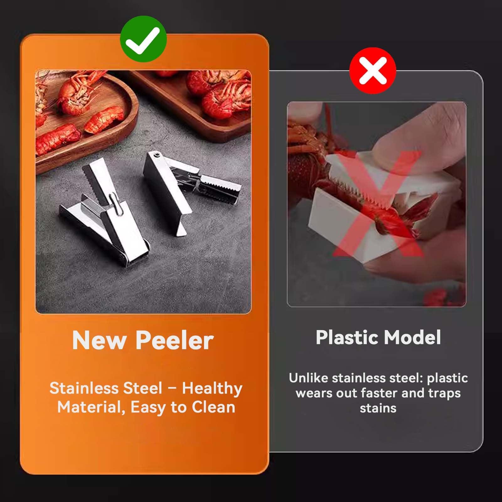 Uanstrengt fjerning av skall: Med krepseskrelleren er det utrolig enkelt å fjerne skall. Med bare noen få enkle håndgrep kan du bli kvitt skallet og sikre en jevn og hyggelig matopplevelse. Si farvel til rotet og ulempene ved å håndtere kreps med bare hender, da denne skrelleren holder hendene rene under hele prosessen.