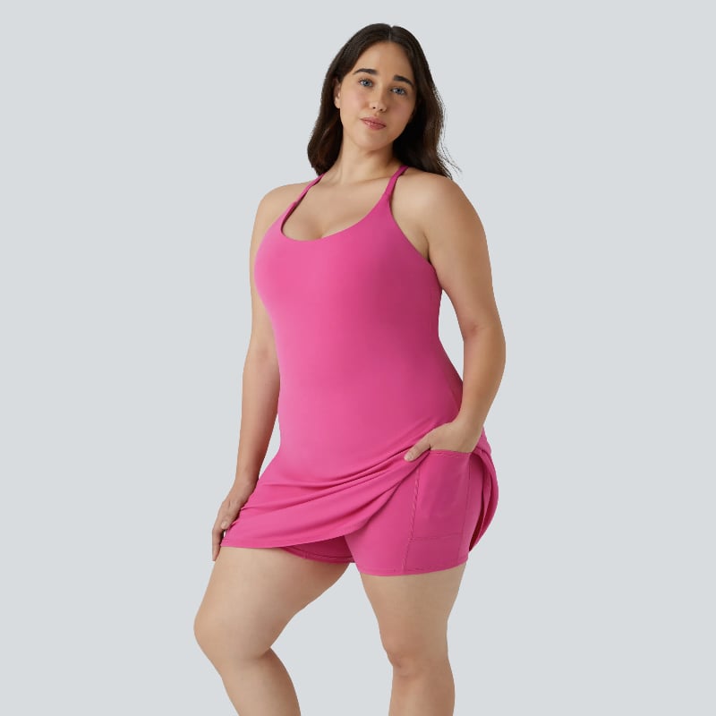 Hold deg tildekket og komfortabel med elastiske, innebygde shorts og avtagbare pads som gir støtte akkurat slik du vil ha det - fra du snurrer rundt på dansegulvet til du jager valpen i parken.