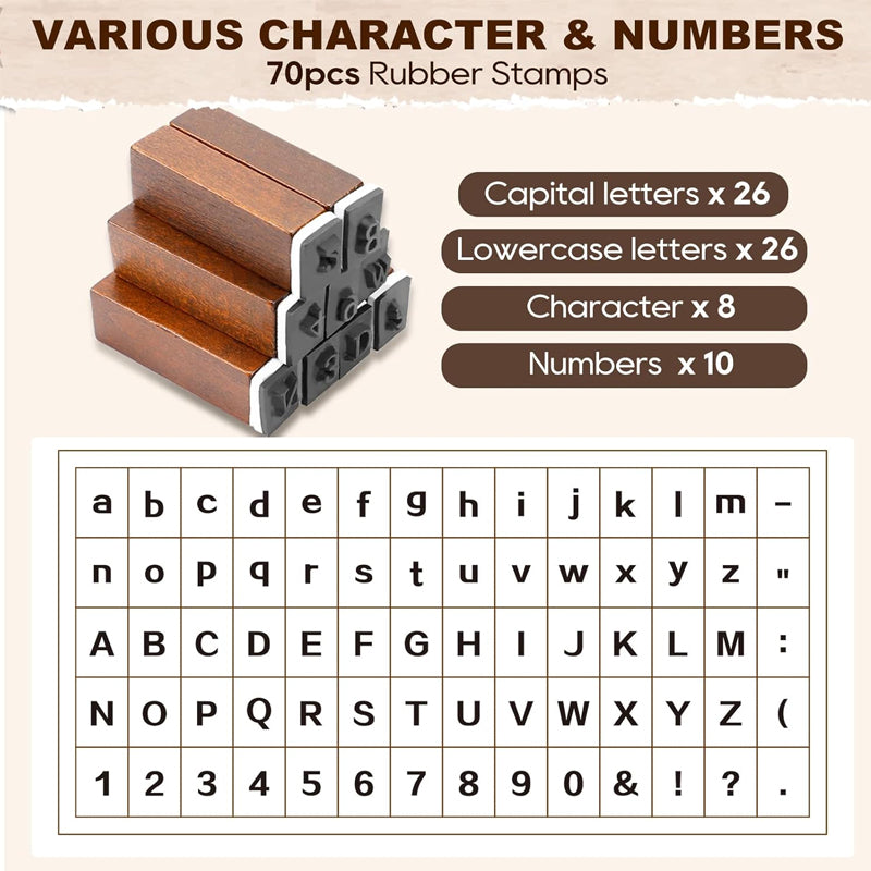 - Komplett sett med bokstavstempler: Inneholder 26 store bokstaver og vanlige tall og tegnsettingstegn for å dekke alle dine behov for tekstkombinasjoner.
