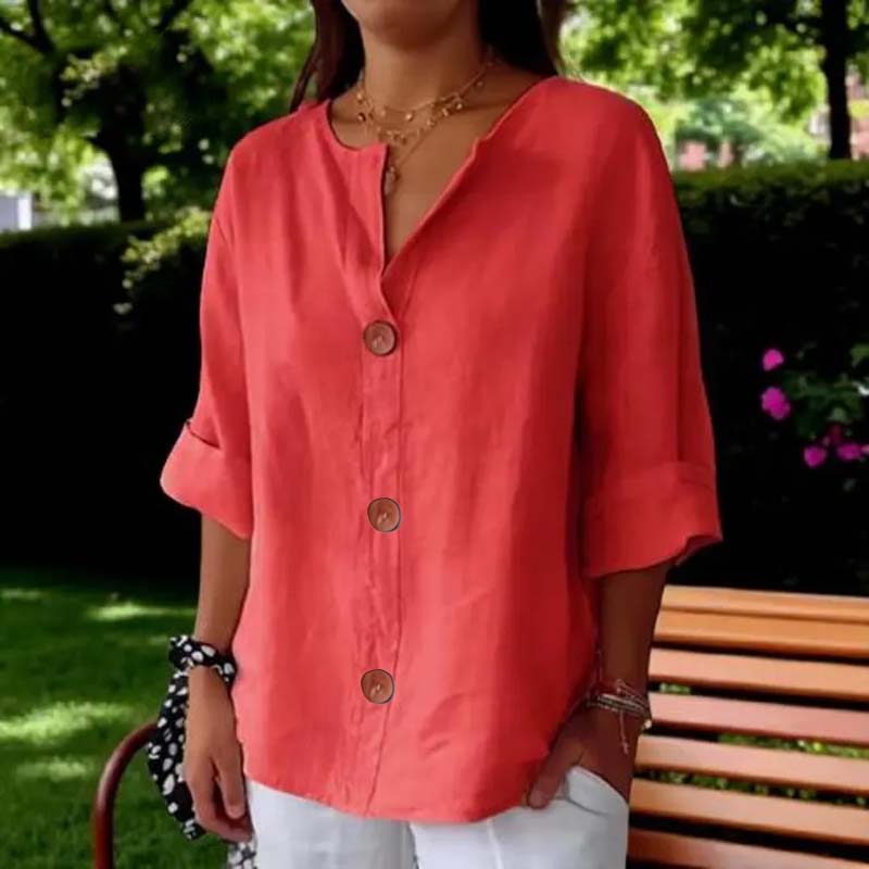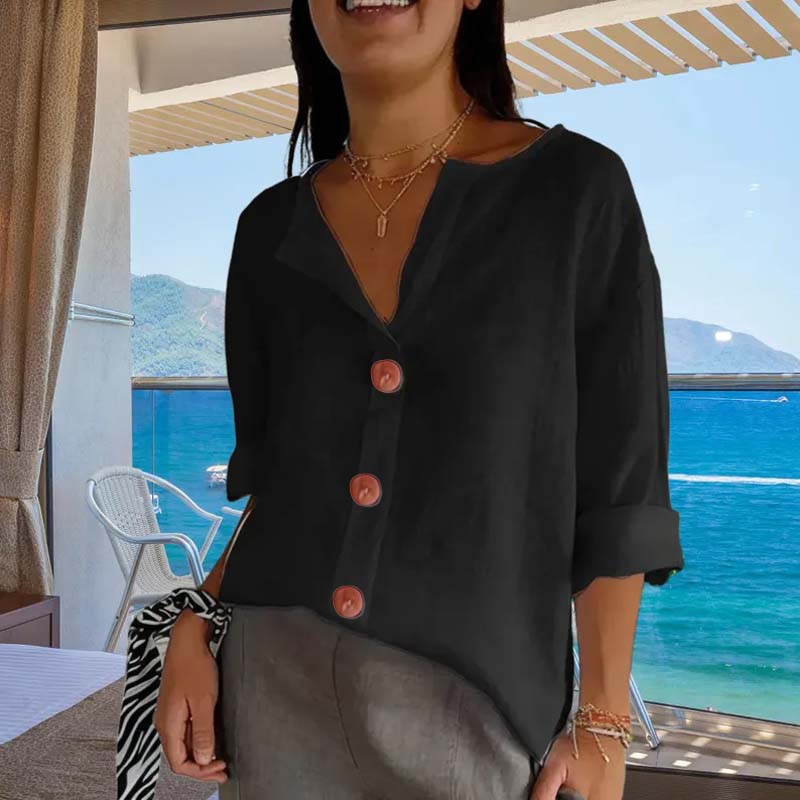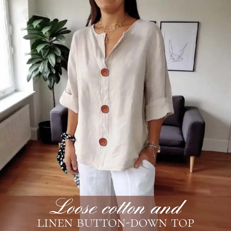 - 1 x Løs skjorte i bomull og lin med knappelukking🍃