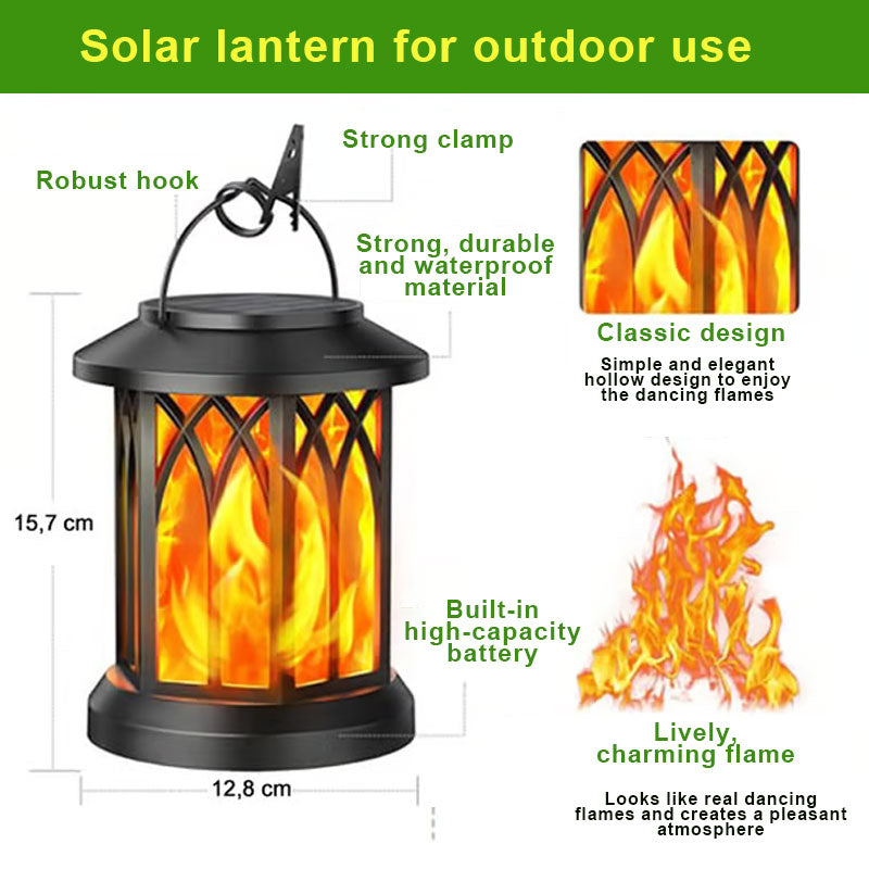 Oppgradert flimrende flamme solcellelykt utendørs vanntett
