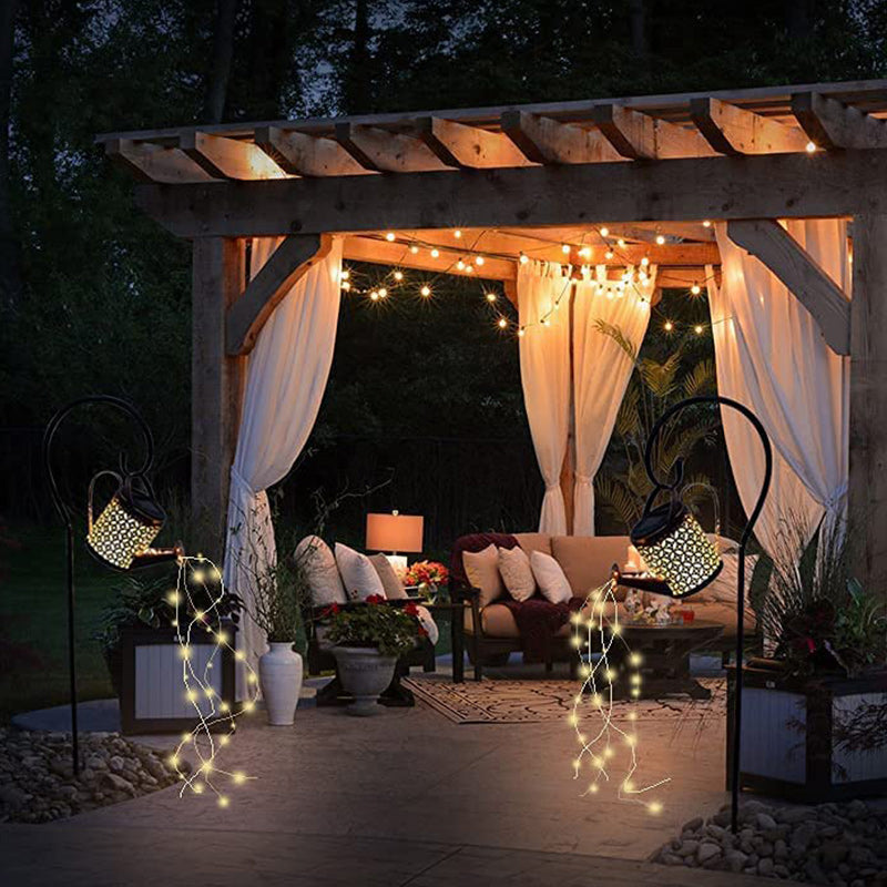 Flott gave: Om natten vil vannkannen med lys være en attraktiv dekorasjon i hjemmet ditt, og sende ut varme gule lys, som ser ut som en rekke skinnende stjerner som strømmer fra en vannkanne, og projiserer vakre mønstre på bakken for å skape en romantisk atmosfære. Det er en perfekt gave til Eid Mubarak, morsdag, farsdag, bursdagsgave, jul, Thanksgiving, Gardners gave.