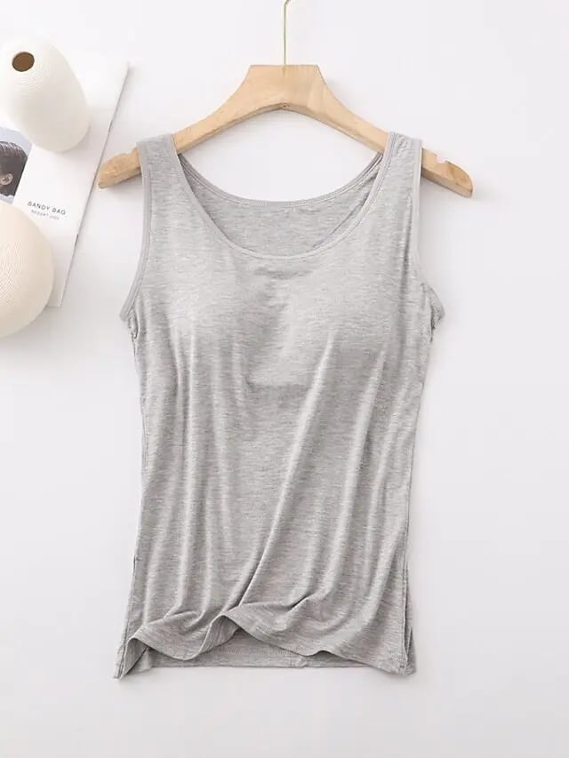 Damesinglet med innebygd BH, ermeløs, avslappet, enkel, rund hals, vanlig