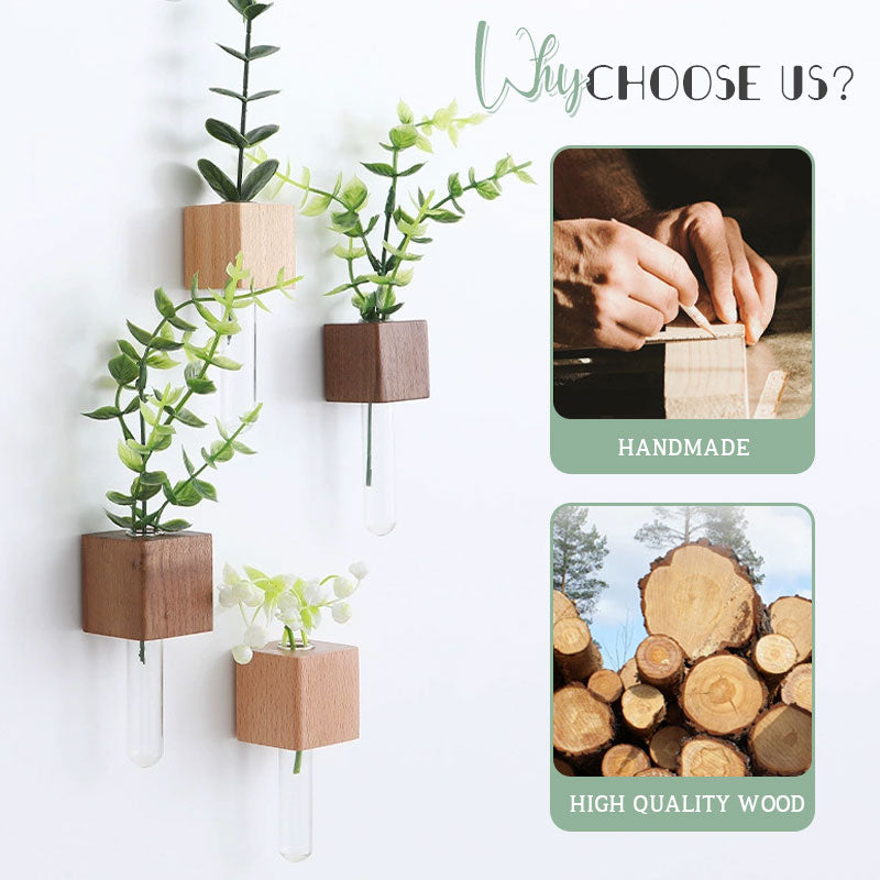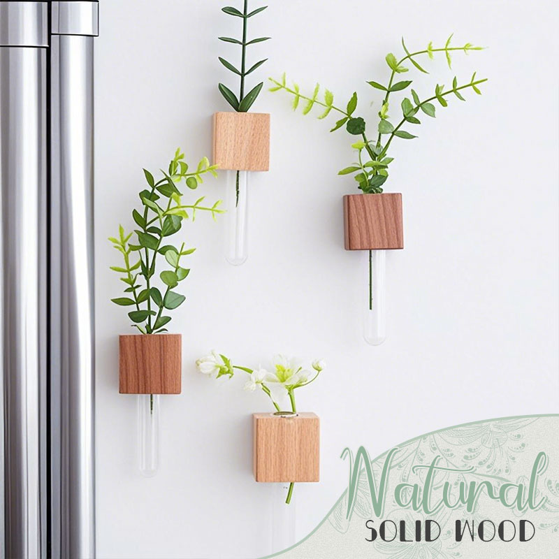 Bruk en haug med små blomster for å vekke livets poesi! Denne blomstervasen i massivt tre er laget av naturlig massivt tre, med klar tekstur, avrundet polering og parret med gjennomsiktige reagensrør. Den er enkel, men stilig, og tilfører hjemmet ditt et snev av friskhet og natur🌱🏡