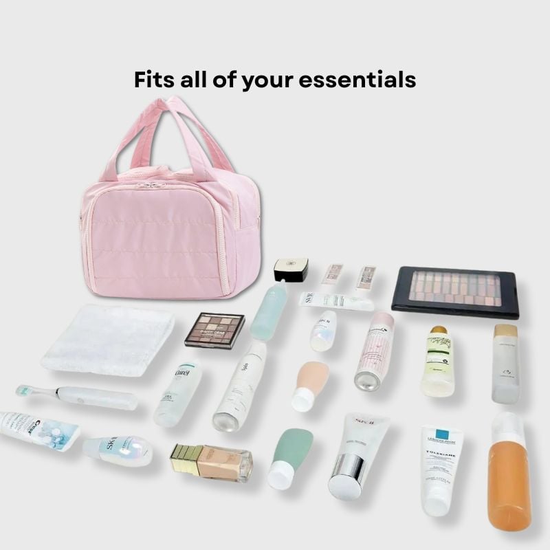 Det romslige og lette designet gjør den til den perfekte følgesvennen for å enkelt bære alle skjønnhetsproduktene dine.